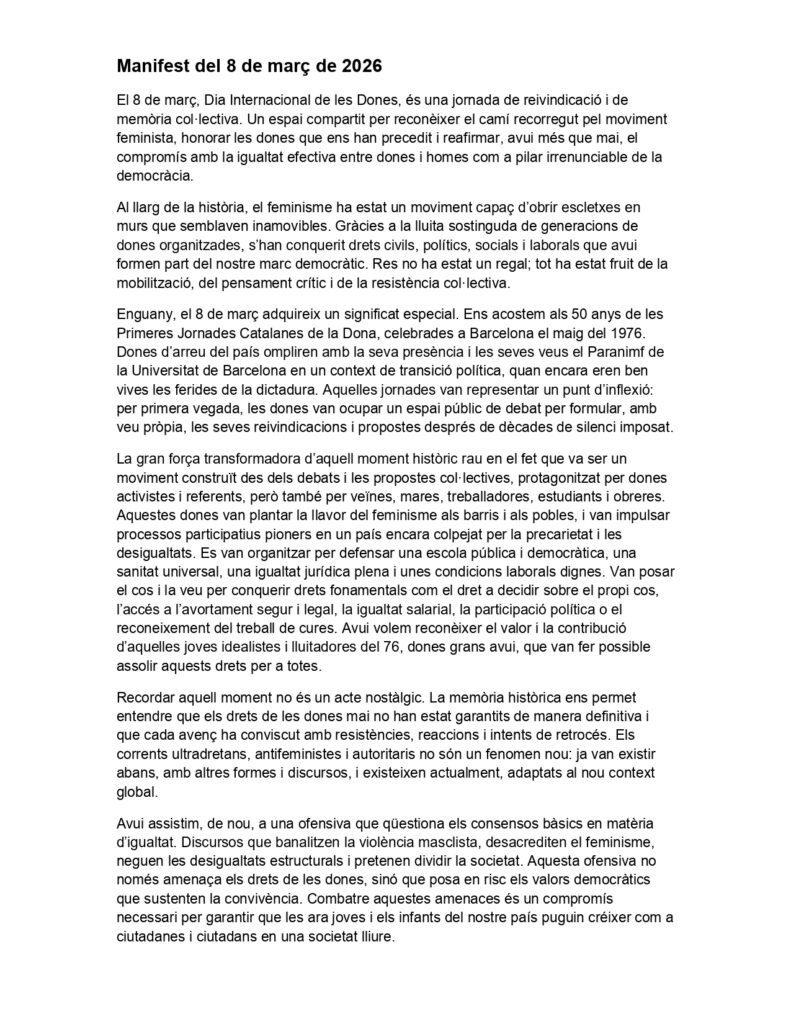 Actualitat, Agenda Manifest 8 de març de 2026. Dia Internacional de les Dones 8 de març | Dia Internacional de les Dones < Entrada AnteriorEntrada Posterior >