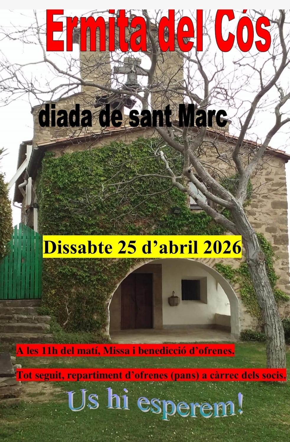 ℹ️ DIADA DE SANT MARC A L’ERMITA DEL CÓS 🗓️ Dissabte 25 d’abril🕚 A les 11:00 h