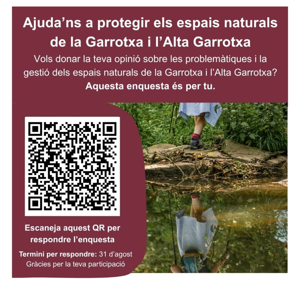 Aquesta enquesta es fa en el marc del “Pla d’ús públic de la comarca de la Garrotxa i els seus espais naturals” impulsat pel Consell Comarcal de la Garrotxa, en col·laboració amb Turisme Garrotxa, el Consorci de l’Alta Garrotxa i el Parc Natural de la Zona Volcànica.