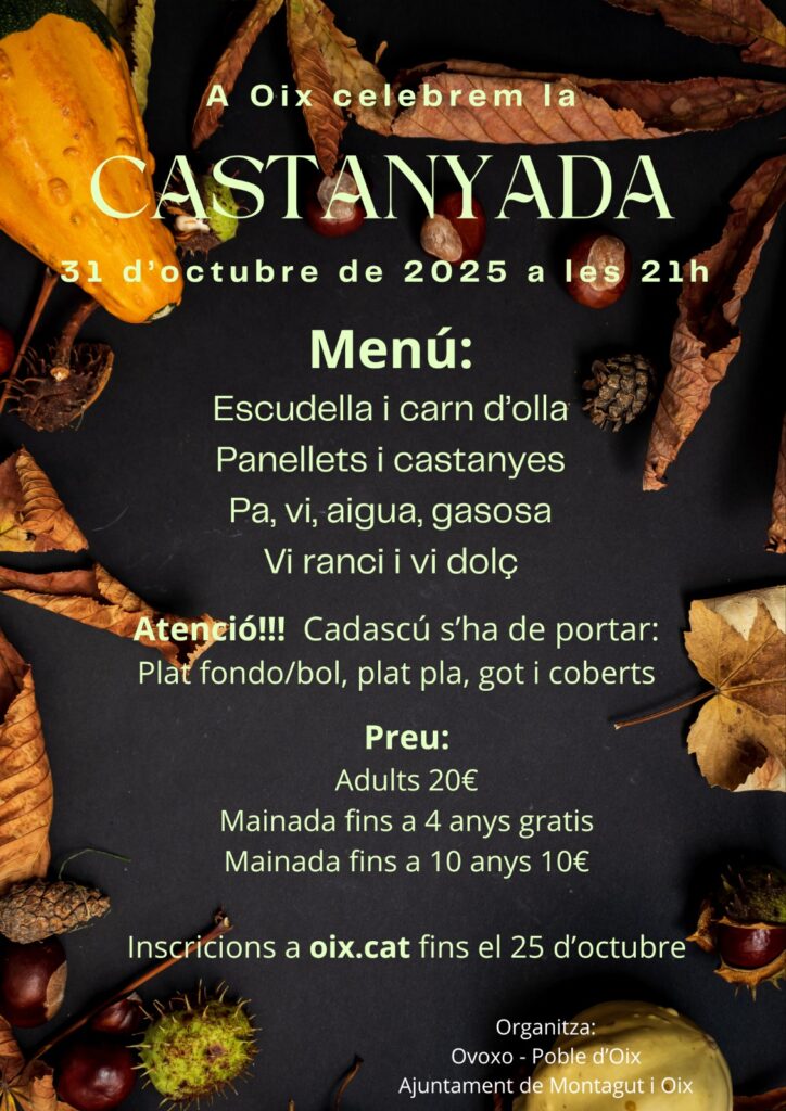 A Oix celebrem LA CASTANYA el proper 31 d’octubre, amb un sopar popular. 🌰