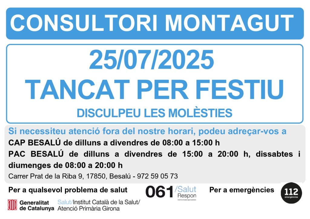 DIJOUS 25 DE JULIOL TANCAT PER FESTIU LOCAL