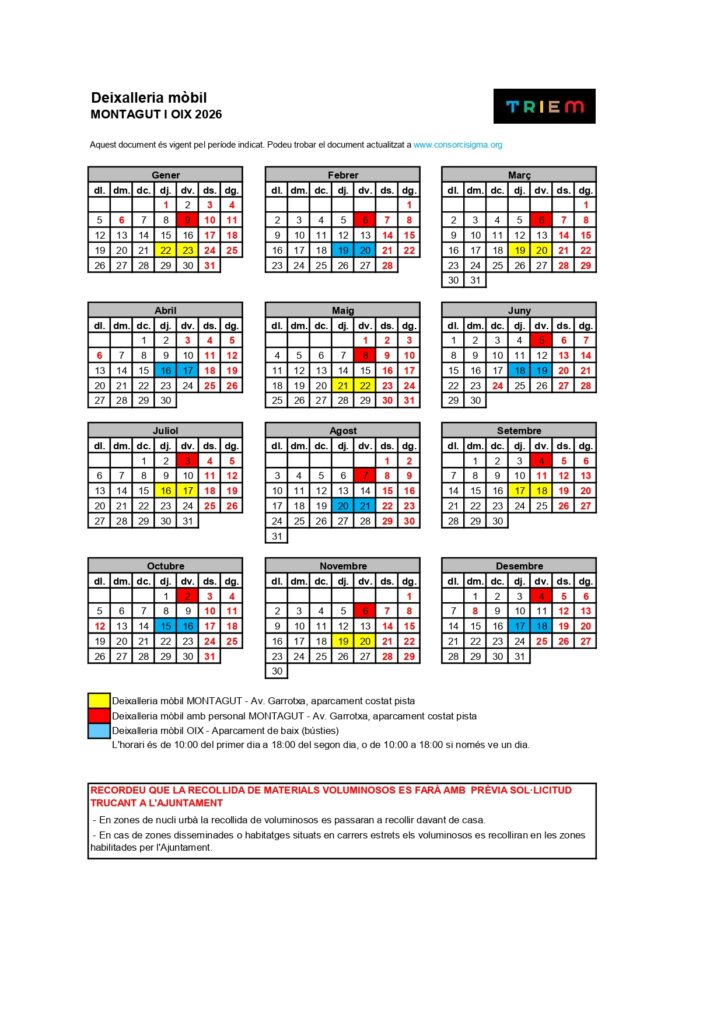 - Calendari Deixalleria Mòbil i recollida voluminosos any 2026