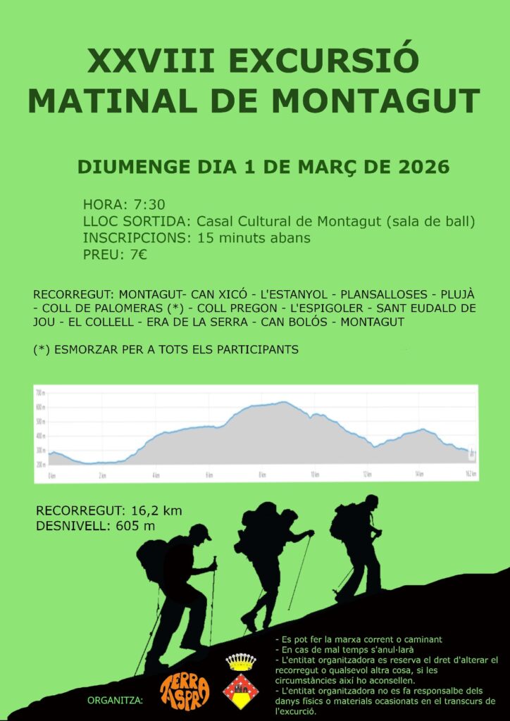 Agenda XXVIII Excursió matinal de Montagut Diumenge 1 de març a les 7:30 h. | Sortida al Casal ℹ️ XXVIII EXCURSIÓ MATINAL DE MONTAGUT 🗓️ Diumenge 1 de març🕣 7:30 📍 Casal de Montagut < Entrada Anterior